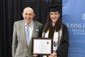 Because that initial scholarship so many years ago had such a positive impact on Baron and (indirectly) his granddaughter Jennifer, the two are joining with their family to create the Seymour and Jennifer Baron Scholarship, an endowment that will support students with financial need who enroll in the Whiting School of Engineering. It is the first scholarship to be named in honor of alumni who are grandfather and granddaughter.