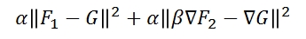 - Smoothing/Sharpening/High-Low Compositing: Given input low- and high-frequency images, a gradient modulation term, and a pixel fidelity term, our code outputs the best-fit image whose gradients match the modulated gradients of the high-frequency input image and whose pixel values match the pixel values of the input low-frequency image. Formally, if F1 is the low-frequency image, F2 is the high-frequency image, α is the fidelity term, and β is the gradient modulation term, the output image G is the image minimizing the sum of square norms: