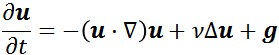 where u is the velocity of the flow, ν is the kinematic viscosity, and g is an external force.