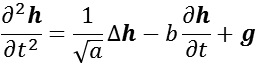 where h is the height of the wave, a is the wave speed, b is the damping coefficient, and g is an external force.