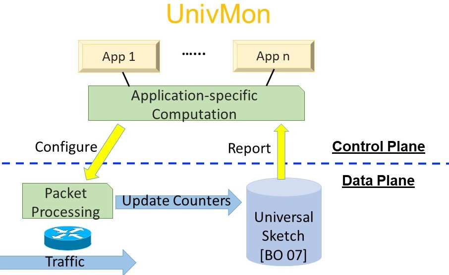 SIGCOMM, One Sketch to Rule Them All: Rethinking Network Flow Monitoring with UnivMon